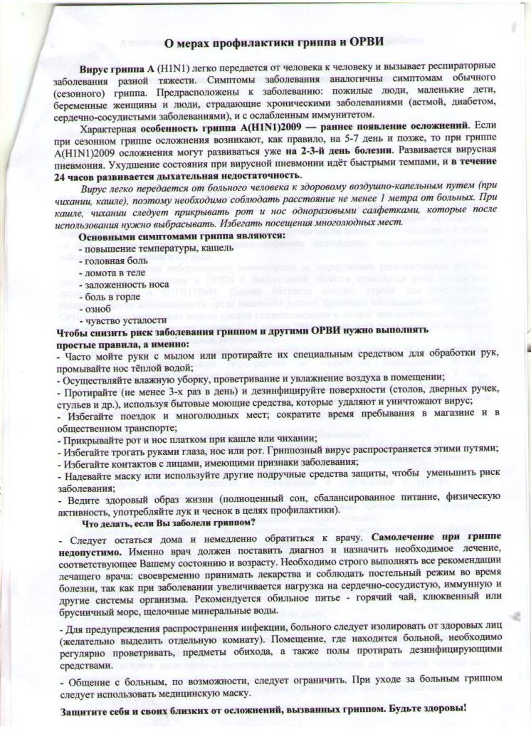 О профилактике гриппа и ОРВИ