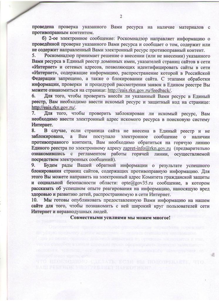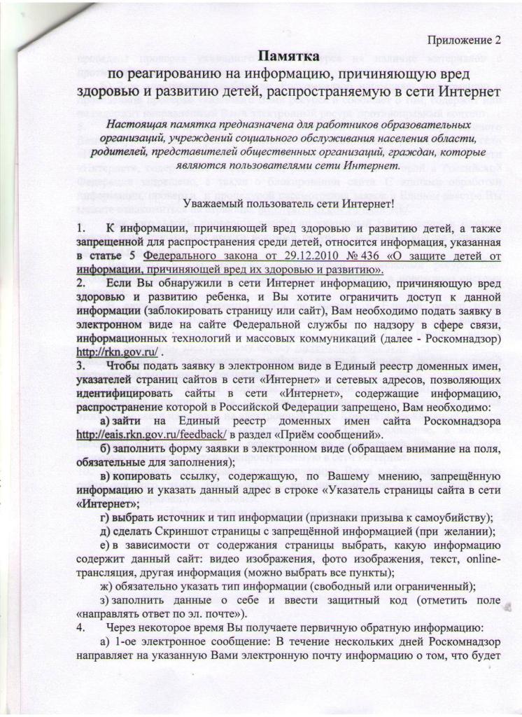 Памятка по реагированию на информацию распространяемую в сети Интернет