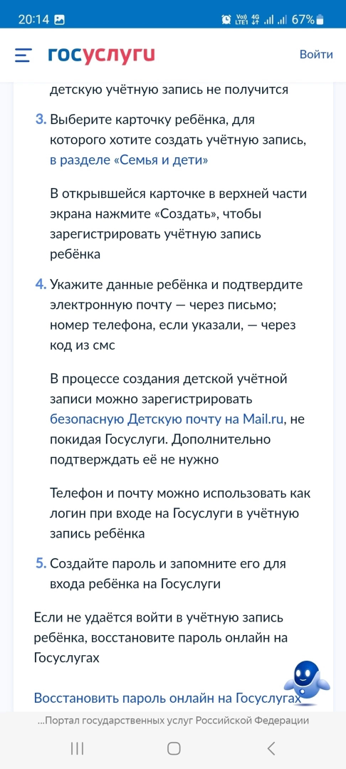 Пошаговая инструкция для родителей и школьников для создания учетной записи ребенка и доступа к электронному дневнику