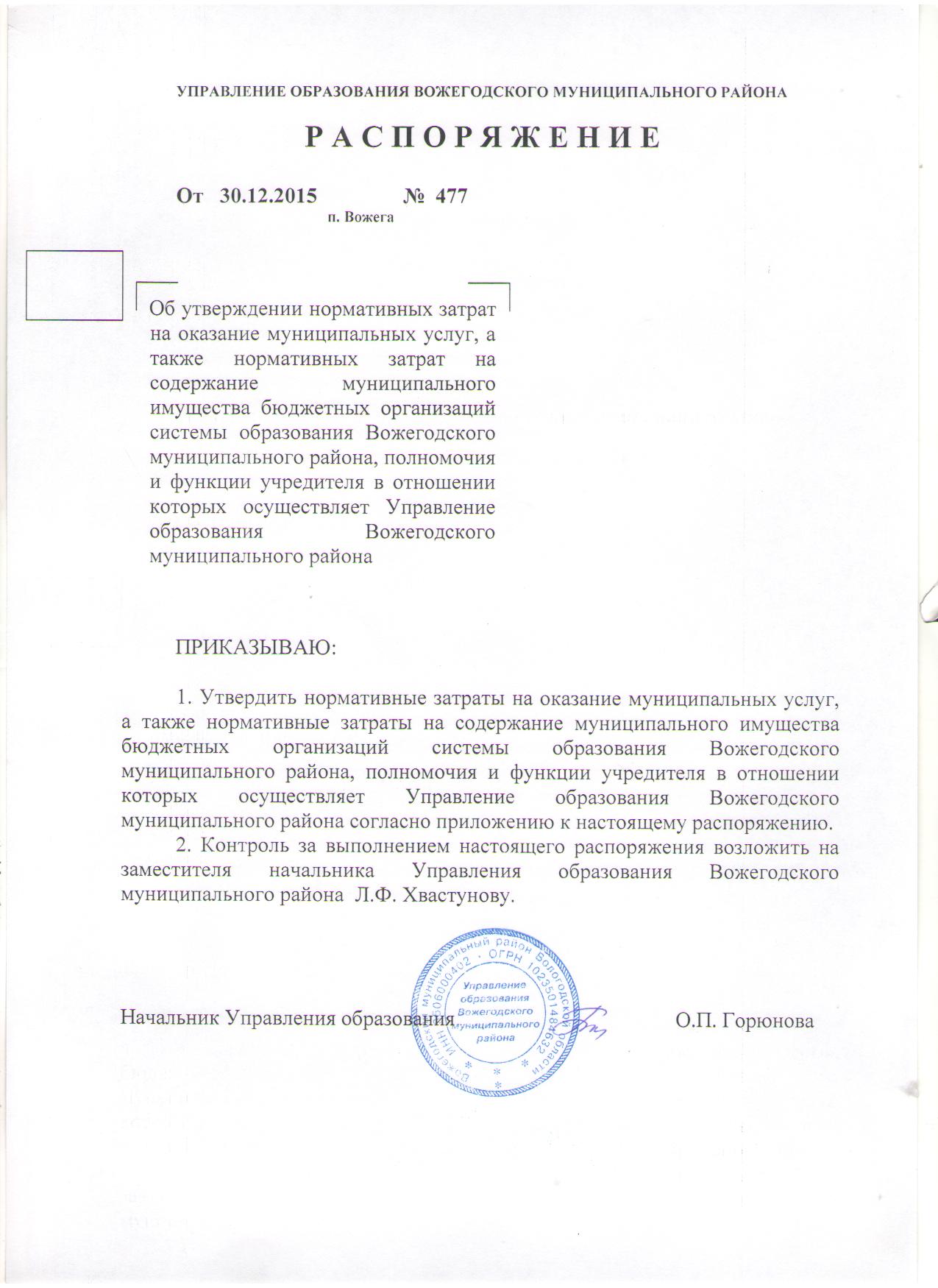 Распоряжение об утверждении нормативных затрат на оказание муниципальных услуг