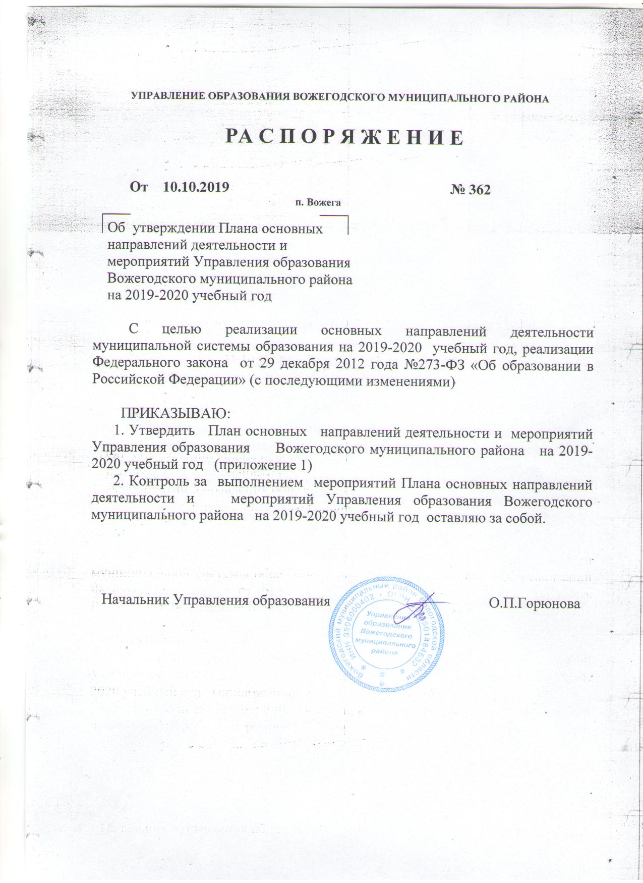 Основные направления работы УО на 2019-2020уч.г.