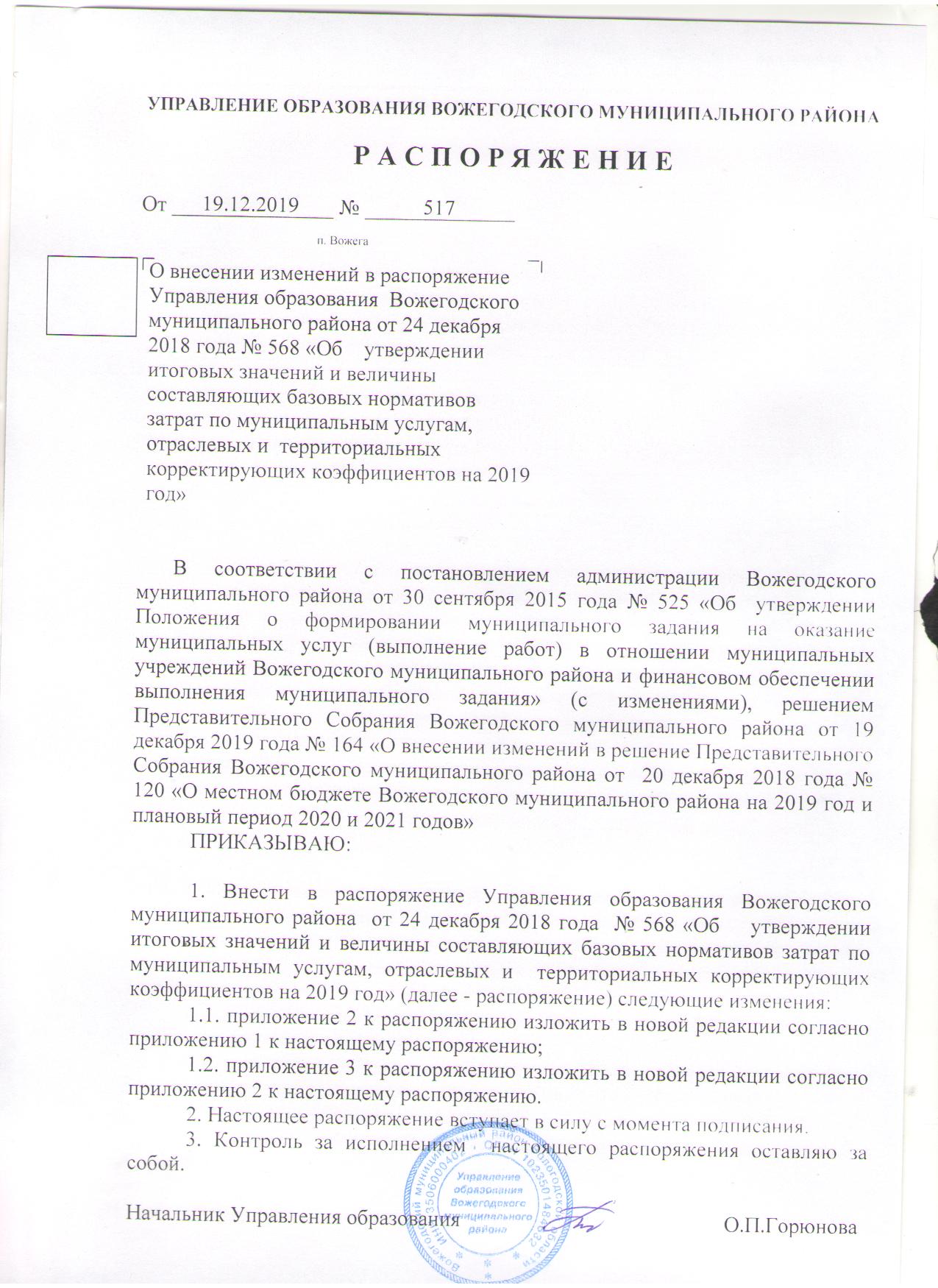 Распоряжение от 19.12.2019 № 517