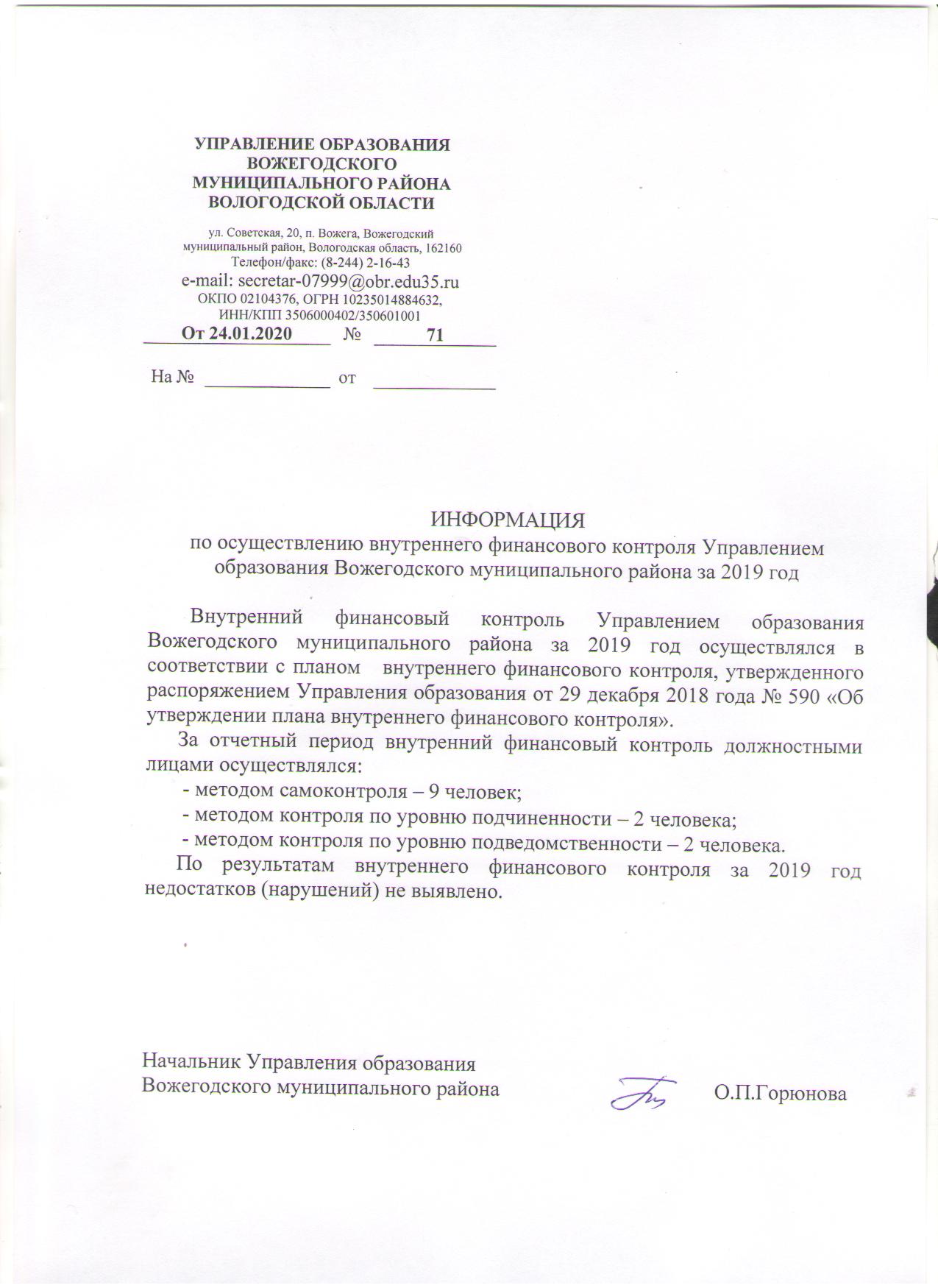 Информация по осуществлению внутреннего финансового контроля УО за 2019 год