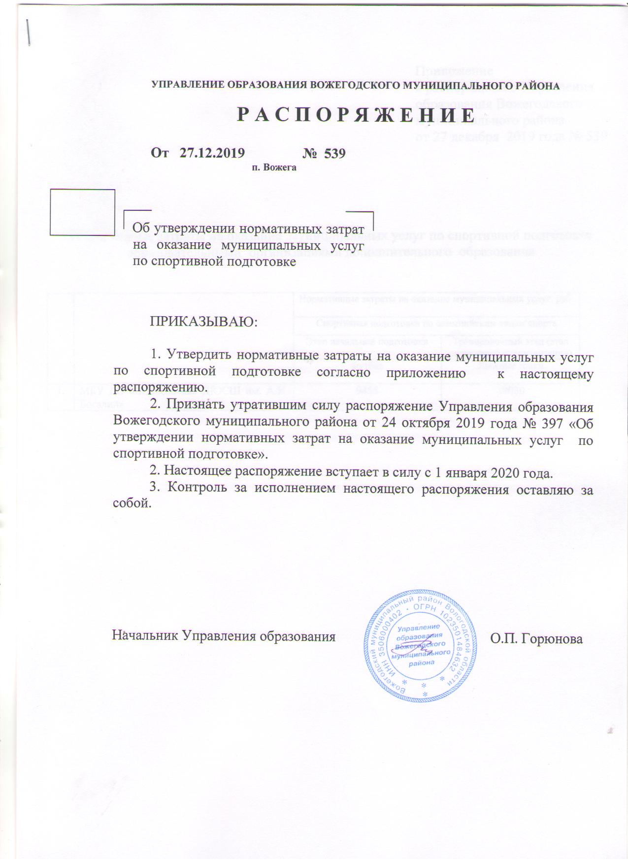 Распоряжение от 27.12.2019 № 539