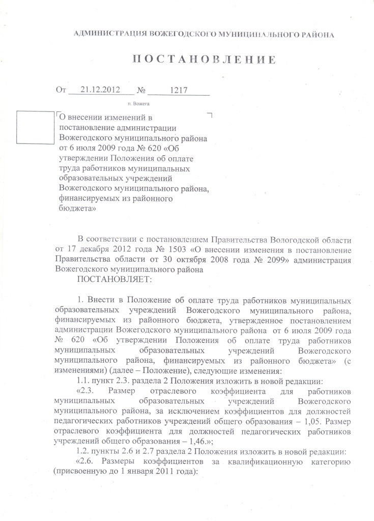 Изменения в постановление №620 "Об утверждении Положения об оплате труда работнков муниципальных ОУ"