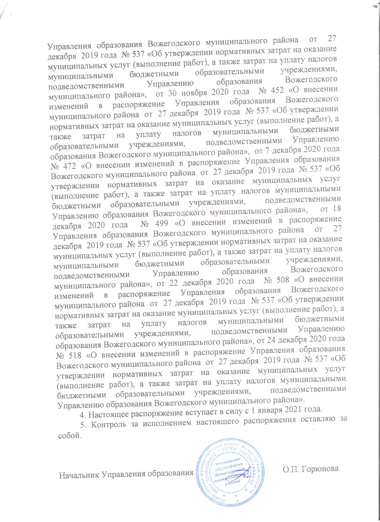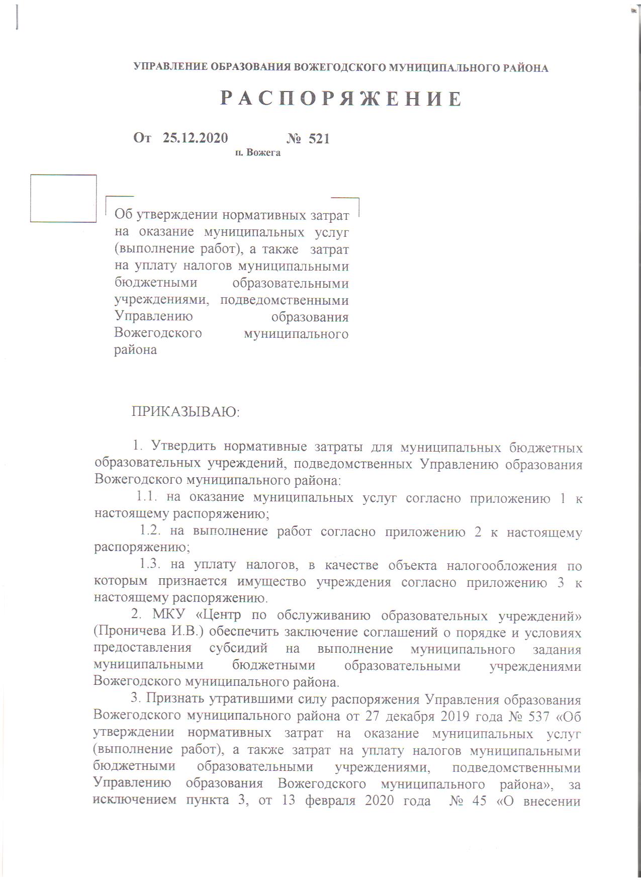 Распоряжение от 25.12.2020 № 521