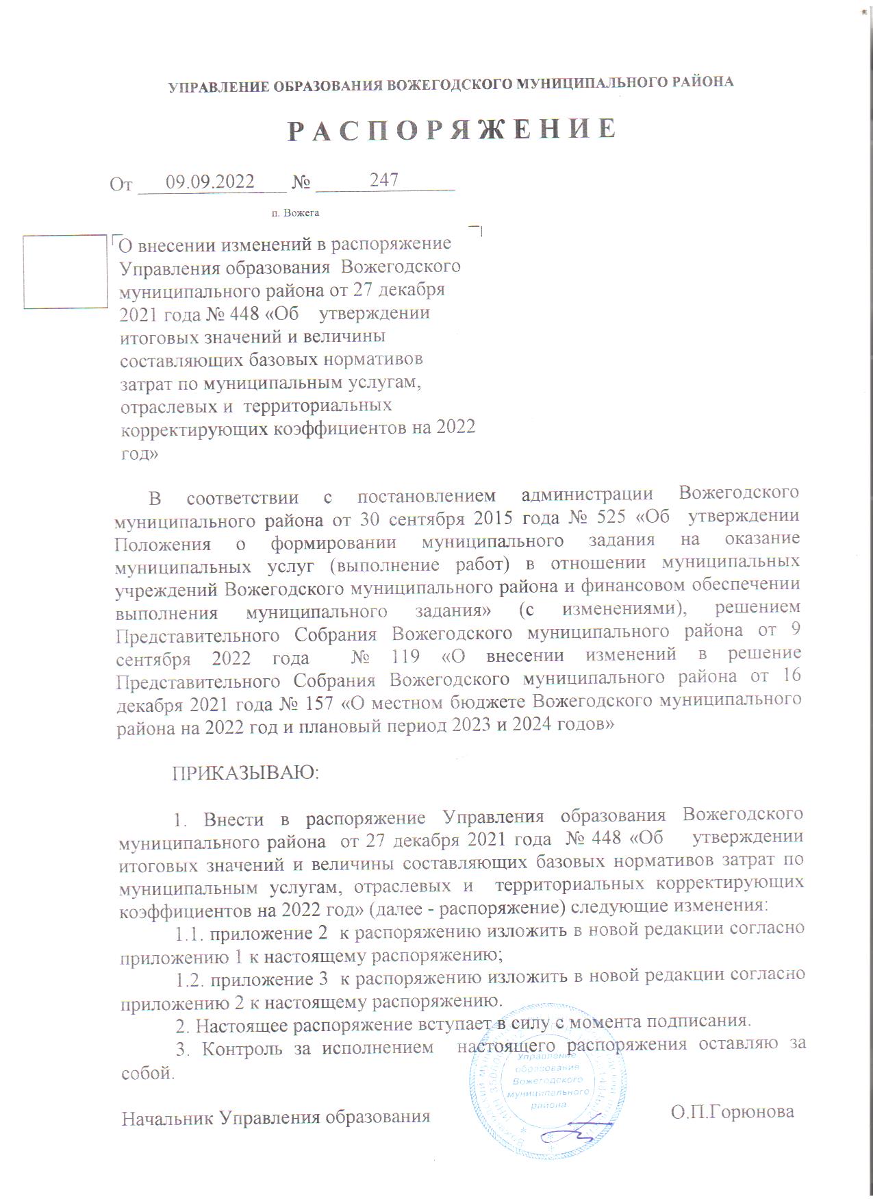 Распоряжение 247 от 09.09.22