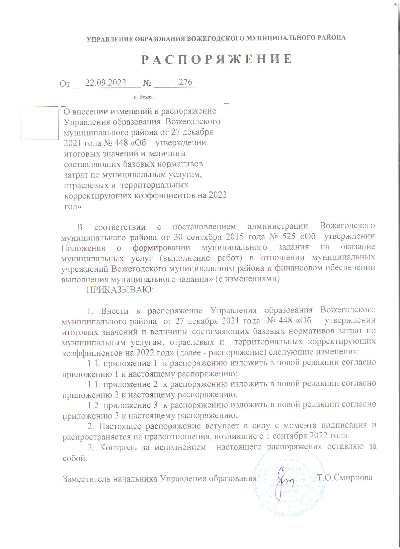 Распоряжение 276 от 22.09.2022