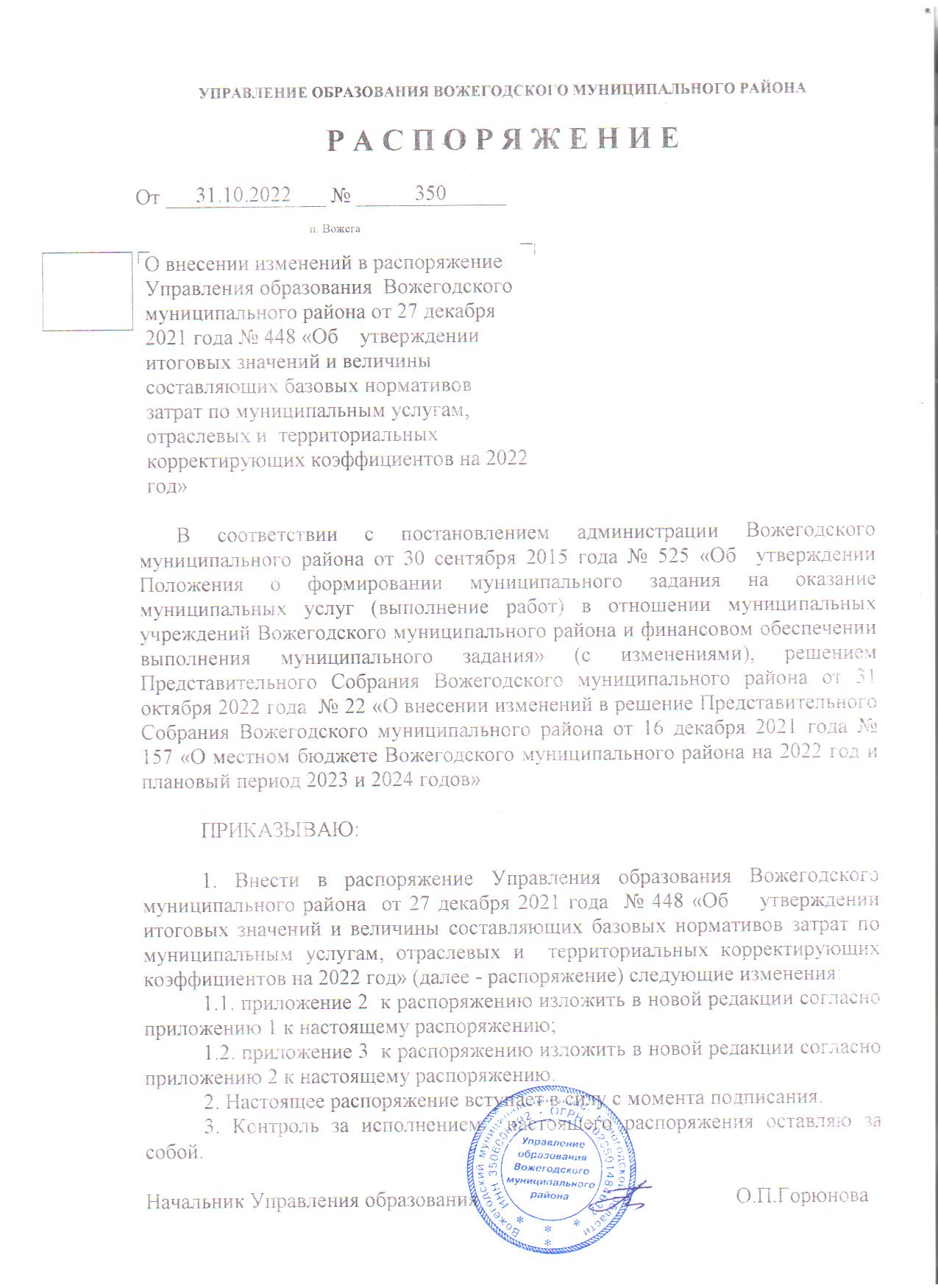 Распоряжение от 31.10.2022 № 350