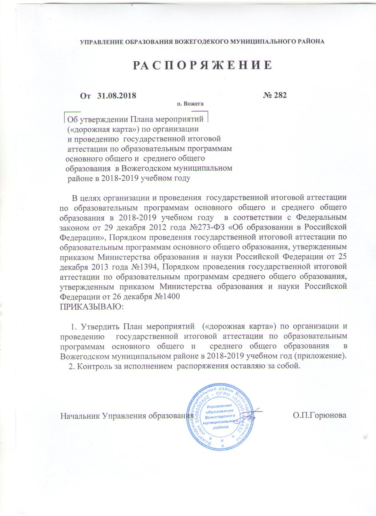 план мероприятий (дорожная карта) по организации ГИА в 2018-2019 учебном году