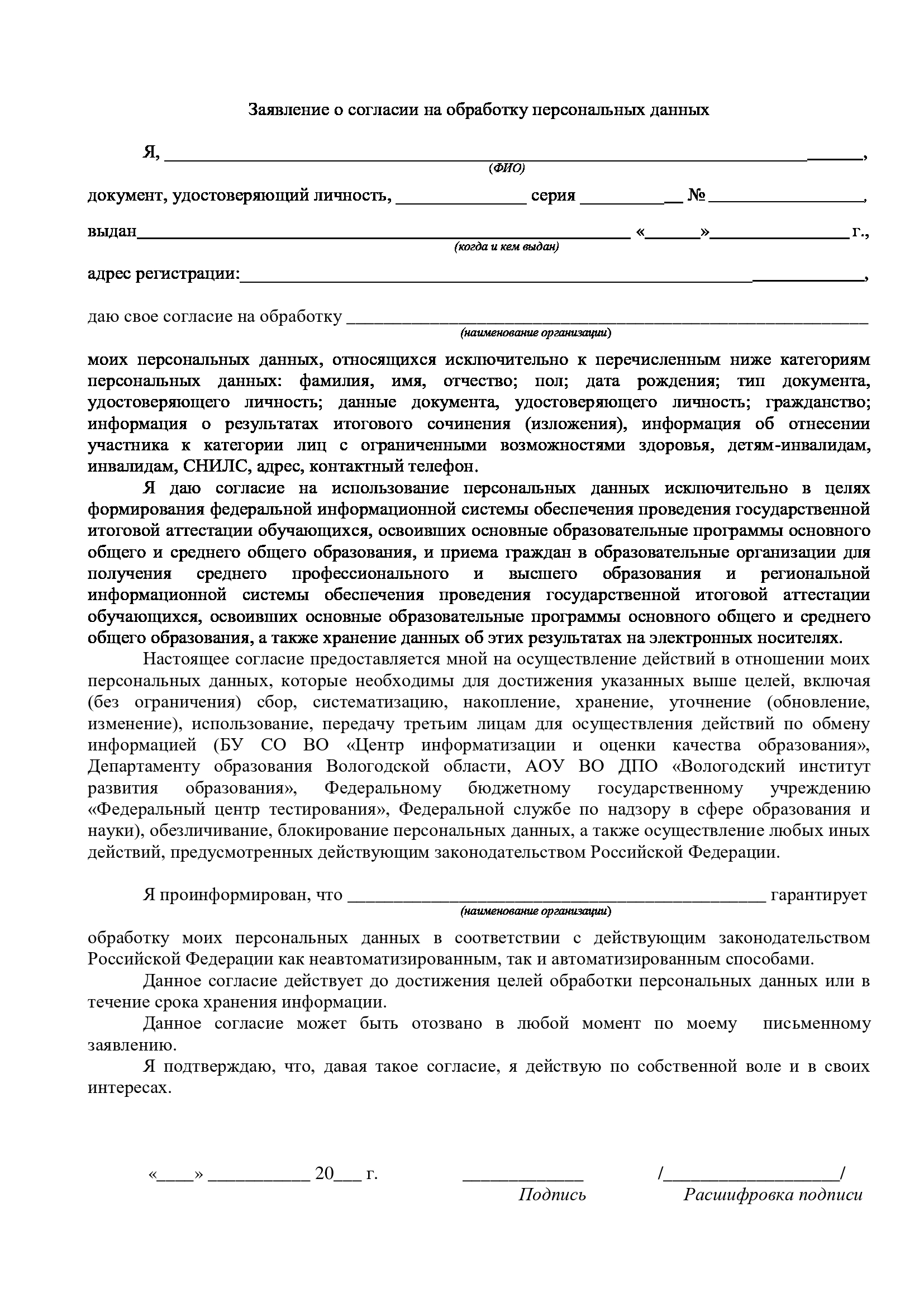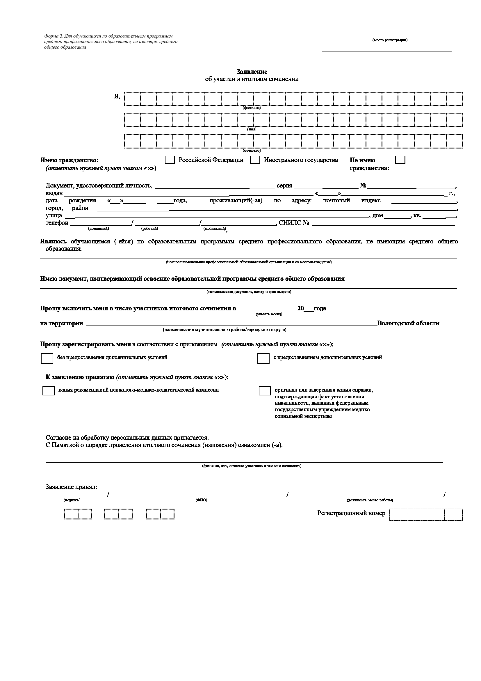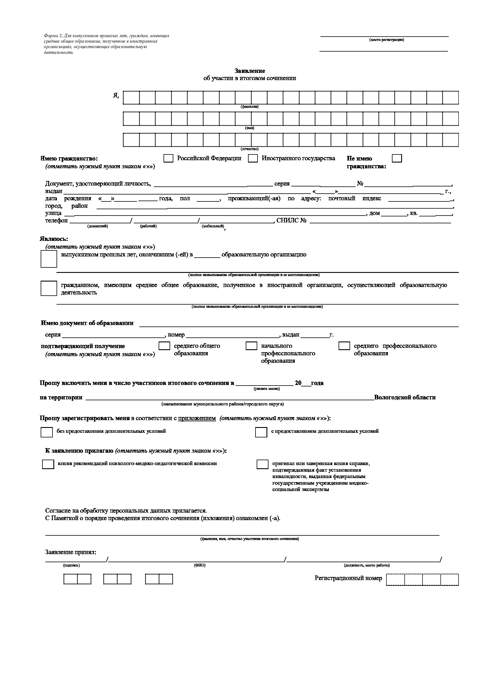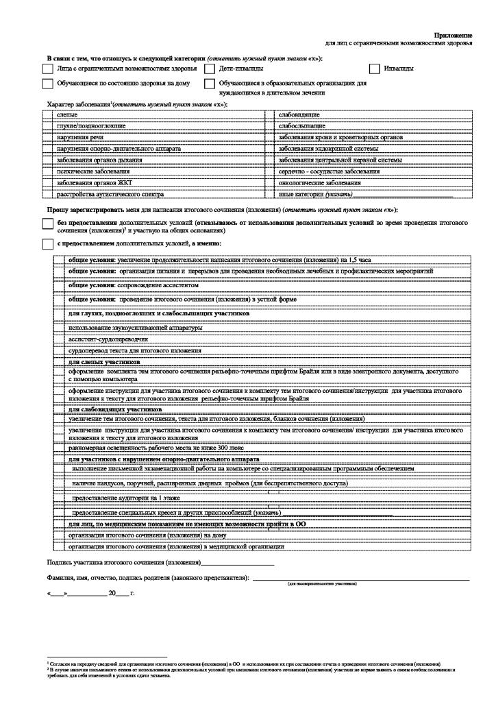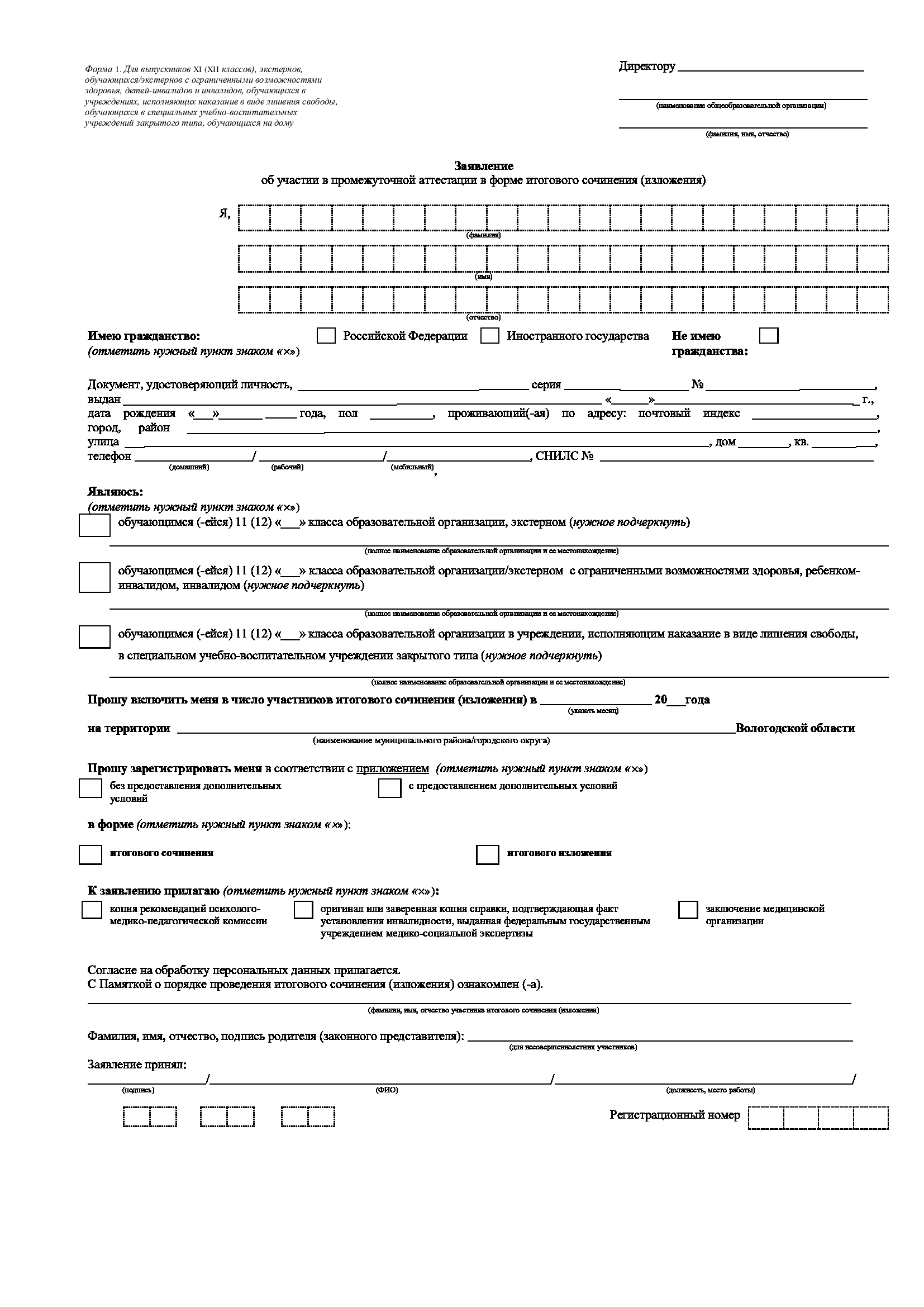Формы заявлений для участия в итоговом сочинении (изложении)