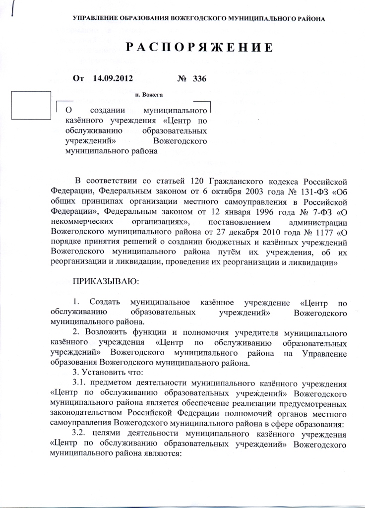 Распоряжение от 14.09.2012 №336