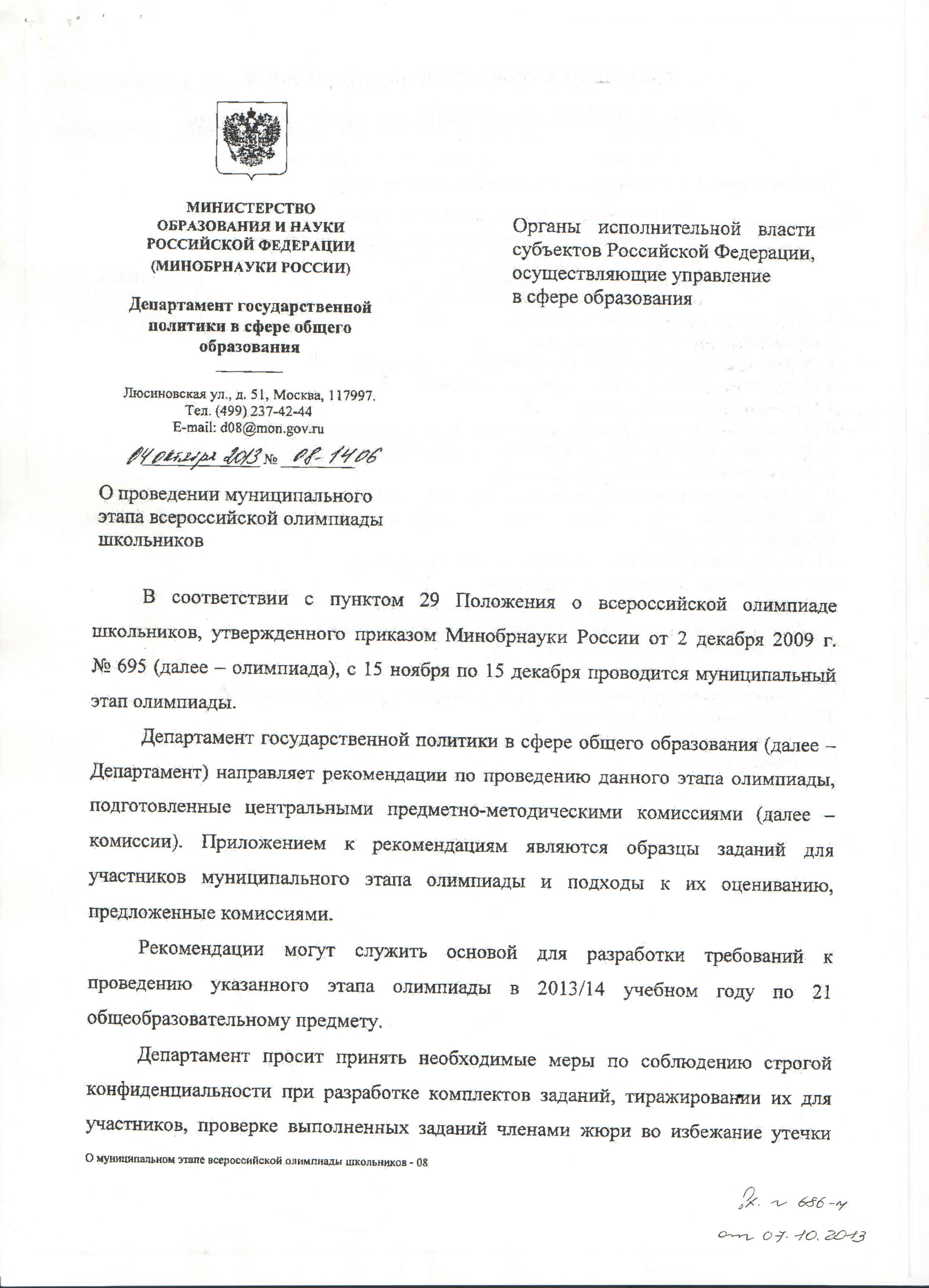 Документы о проведении муниципального этапа всероссийской олимпиады школьников в 2013-2014 уч.г.