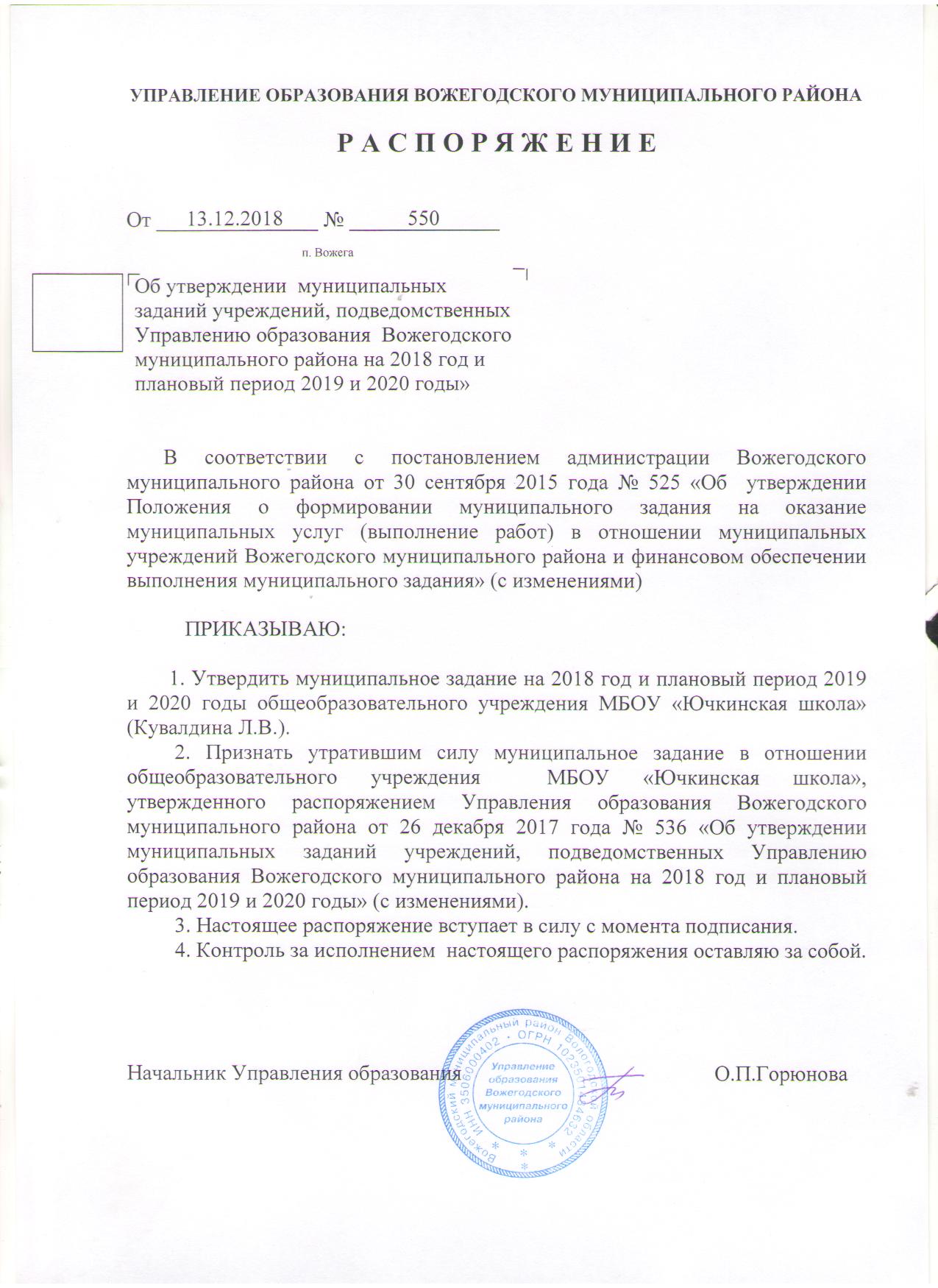 Распоряжение от 13.12.2018 № 550